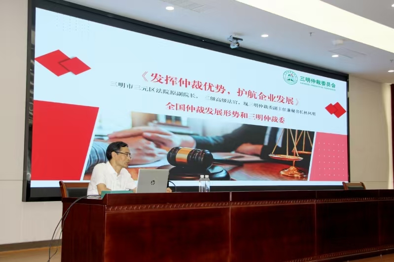 講座過程中,三明仲裁委副主任兼秘書長(zhǎng)林鳳明以自身豐富的理論知識(shí)和實(shí)踐經(jīng)驗(yàn),從什么是仲裁,仲裁與訴訟有哪些相同、哪些不同,仲裁委受理的案件范圍,為何商事合同糾紛優(yōu)先選擇仲裁,如何選擇仲裁等5個(gè)方面詳細(xì)講解了仲裁制度的相關(guān)內(nèi)容,讓與會(huì)人員深刻了解了仲裁和民事訴訟的區(qū)別和優(yōu)勢(shì),拓寬了企業(yè)在商事糾紛中的矛盾解決機(jī)制和途徑。